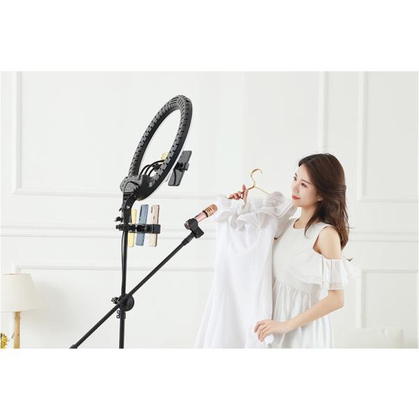 Ring light circular shape for live streaming,Lightness from multi angles make the streamer looks much more professional,the lighting plays a huge role in the quality of the streaming,reduce dark shadows face and whole body outlined and highlighted